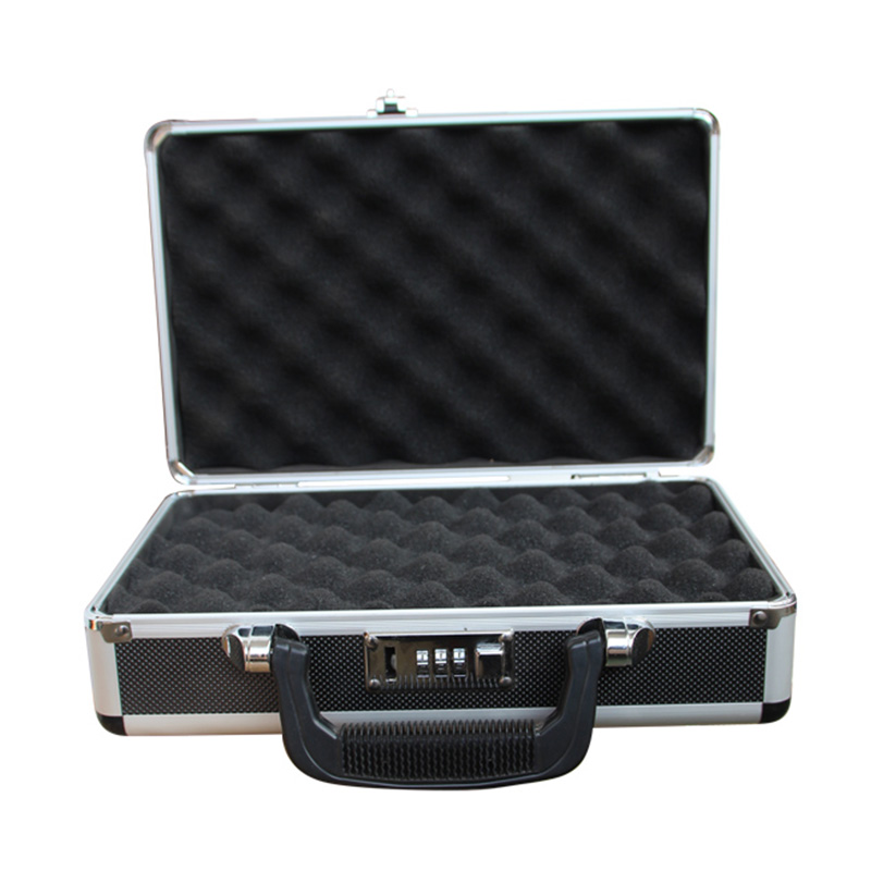 Dafür Pistolenkoffer aus AluminiumDas Schloss ist ein Zahlenschloss.
