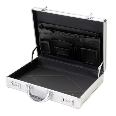 Dafür Aktenkoffer aus AluminiumIm Deckel befinden sich zahlreiche Fächer unterschiedlicher Größe. Sie bieten ausreichend Platz für Dokumente, Visitenkarten, Stifte, Notizbücher usw. Zwei Metallstreben an den Seiten sorgen für zusätzlichen Halt des Deckels. So können Sie sicher sein, dass er sich nicht versehentlich schließt. Zwei Zahlenschlösser schützen Ihre Daten zuverlässig (Hinweis: Merken Sie sich Ihre Zahlenkombination!).