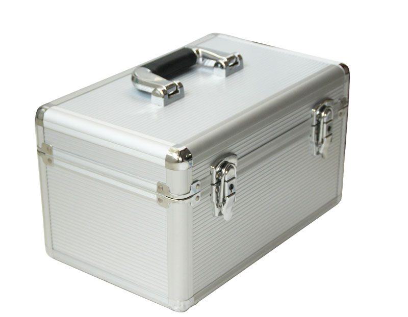 * Ein komfortabler Griff an der Oberseite des Aluminium-Tragekoffers