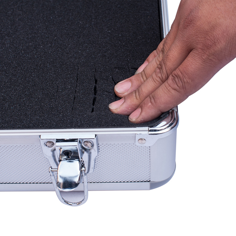 Bei diesem Aluminiumkoffer ist der Wellenschaum im Deckel herausnehmbar. Auch der Schaumstoffwürfel im Boden des Koffers ist herausnehmbar. Der Schaumstoffwürfel besteht aus gleich großen Schaumstoffstücken. Wenn Sie Werkzeuge, Geräte oder verschiedene Instrumente darin verstauen möchten, können Sie einfach die Schaumstoffwürfel entnehmen und an Ihre Bedürfnisse anpassen. Das ist einfach und praktisch. Und vor allem spart es uns viel Geld.