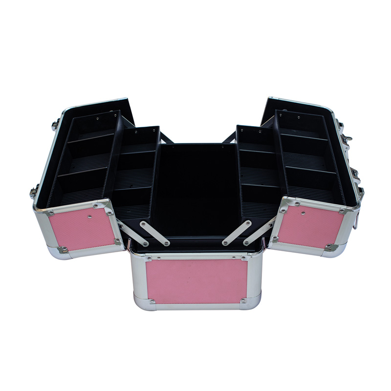 Bewahren Sie Ihre Beauty-Essentials in diesem stylischen pinkfarbenen Behälter auf und organisieren Sie sie. Aluminiumrahmengehäuse Mit verstärkten Stahlecken und einem einzigartigen Steppmuster. Die zahlreichen, mit Samt ausgekleideten Fächer und verstellbaren Ausklappschalen bieten Platz für Make-up, Werkzeuge, Nagelprodukte und vieles mehr.