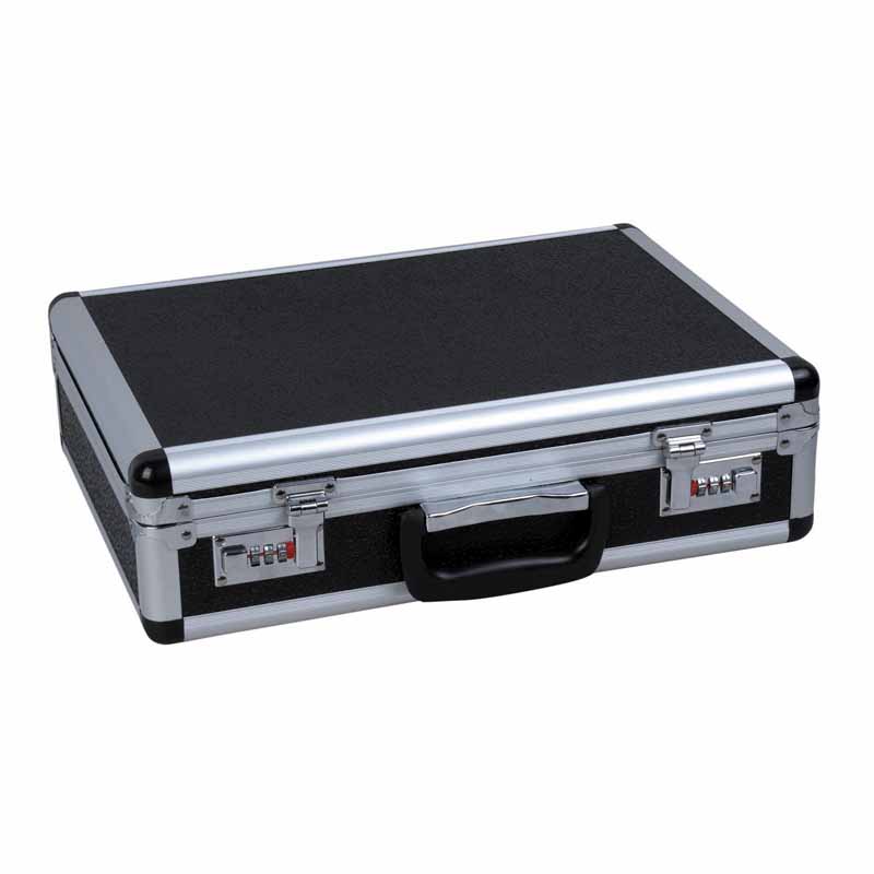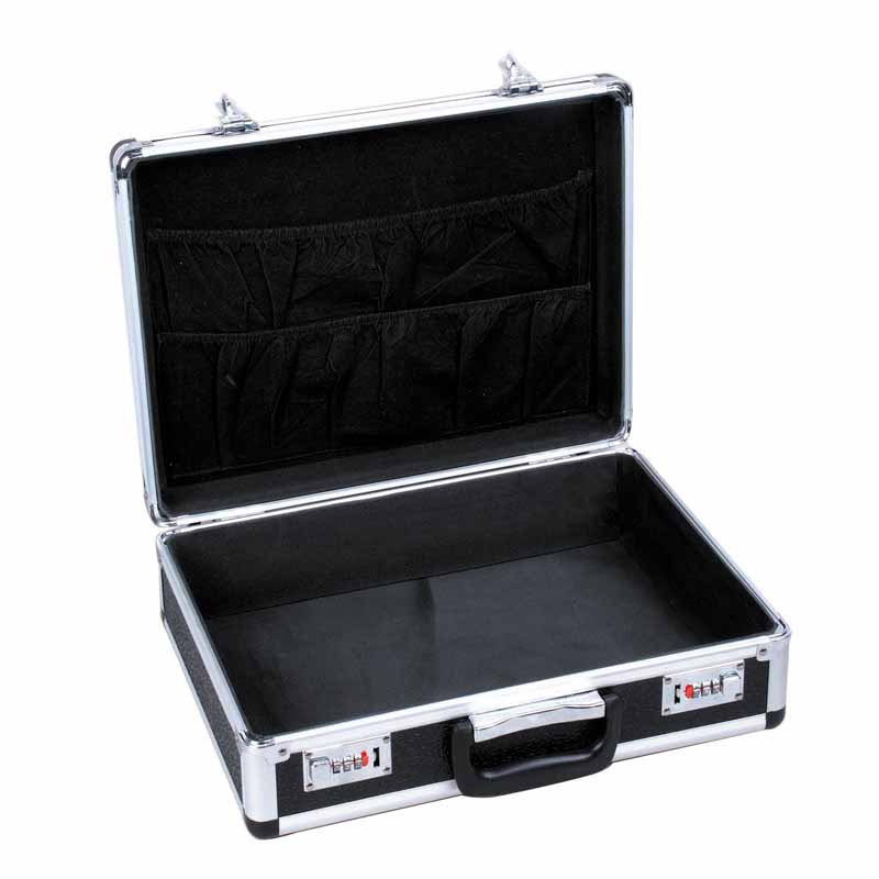 Dafür Aktentasche aus AluminiumEs ist für Geschäftsleute konzipiert. Zwei Fächer im Deckel bieten Platz für Dokumente unterschiedlicher Art. Weitere Fächer befinden sich im unteren Teil des Gehäuses: