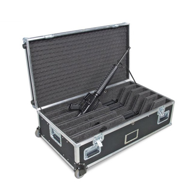Dieser Flightcase Diese Transportbox dient zum Aufbewahren und Transportieren von Gewehren. Herkömmliche Gewehrkoffer bieten in der Regel Platz für ein oder zwei Gewehre und eignen sich nicht für den Transport von Munition. In Holzkisten ist der Transport von Munition gefährlich. Diese Transportbox löst dieses Problem: Die Trennwände im Inneren verhindern, dass die Gewehre aneinanderstoßen.