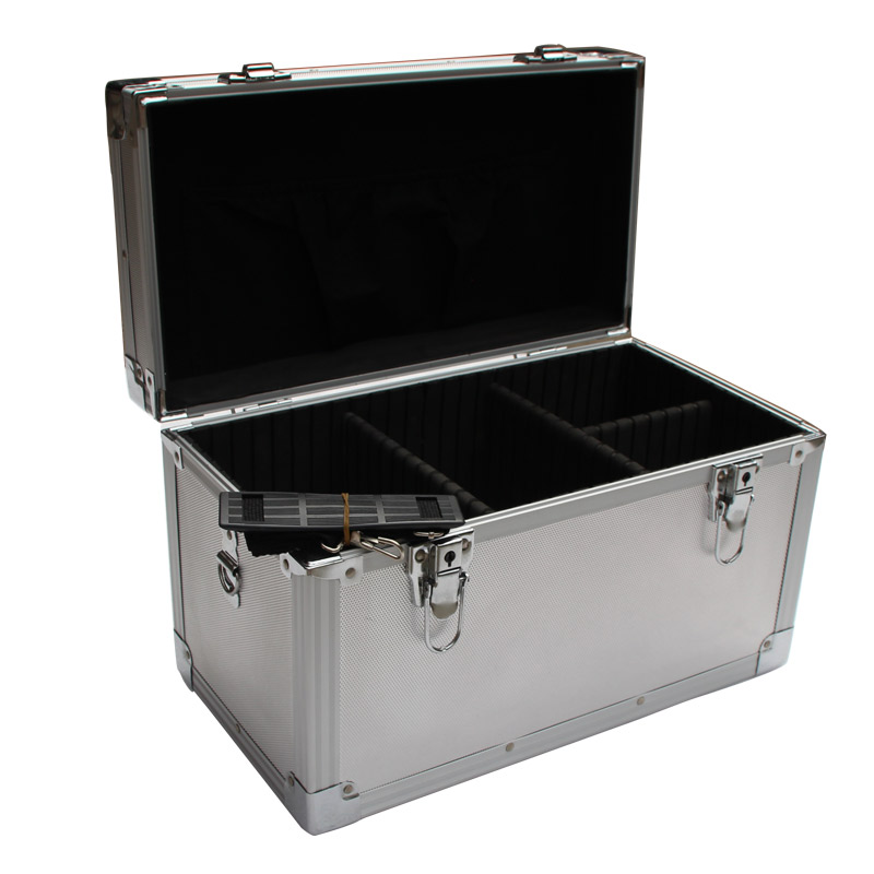Für diesen maßgefertigten Werkzeugkasten besteht die Frontplatte aus Aluminium-Riffelblech. Es ist robust und widerstandsfähig. Das 22 mm starke Profil mit Metallecken trägt dazu bei, dass dieser Werkzeugkasten stabiler ist als herkömmliche Modelle.