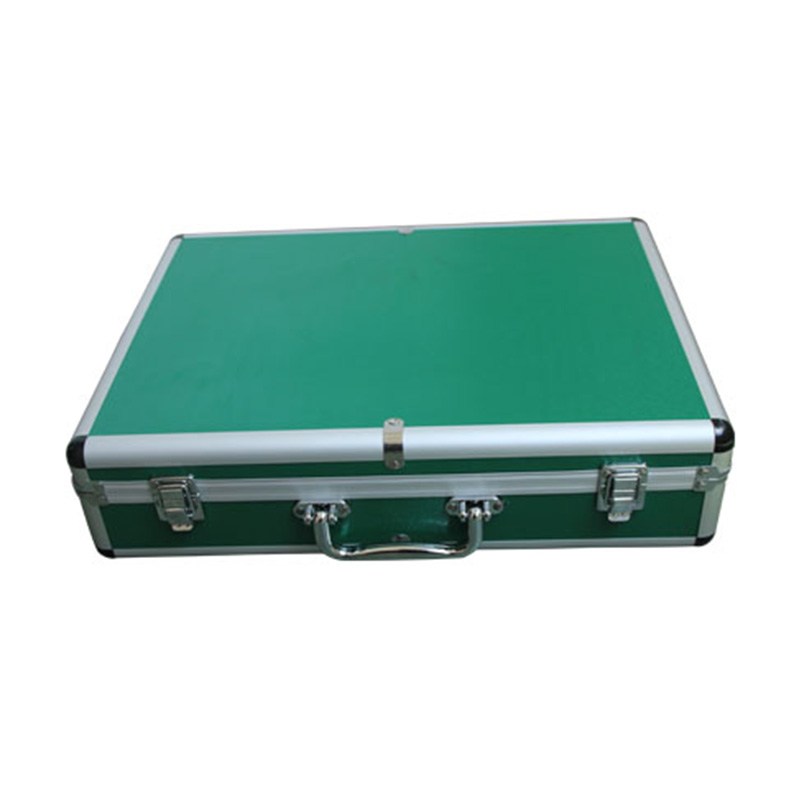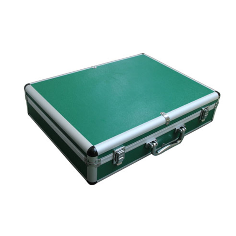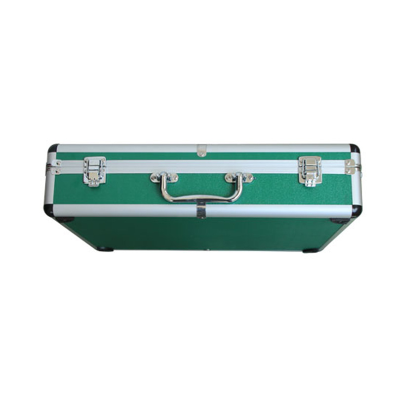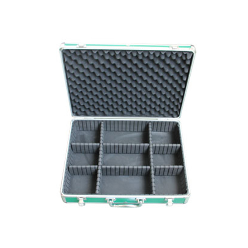 Dieser grüner Werkzeugkoffer ist so konzipiert, dass der Kunde sein eigenes Werkzeugset einbauen kann.