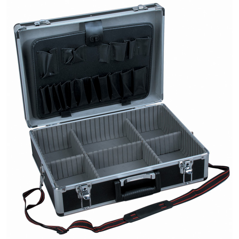 Es gibt auch Werkzeugpaletten und Trennfächer. Informationen zu diesen Innenauskleidungen finden Sie in unseren Aluminium-Werkzeugkoffern.