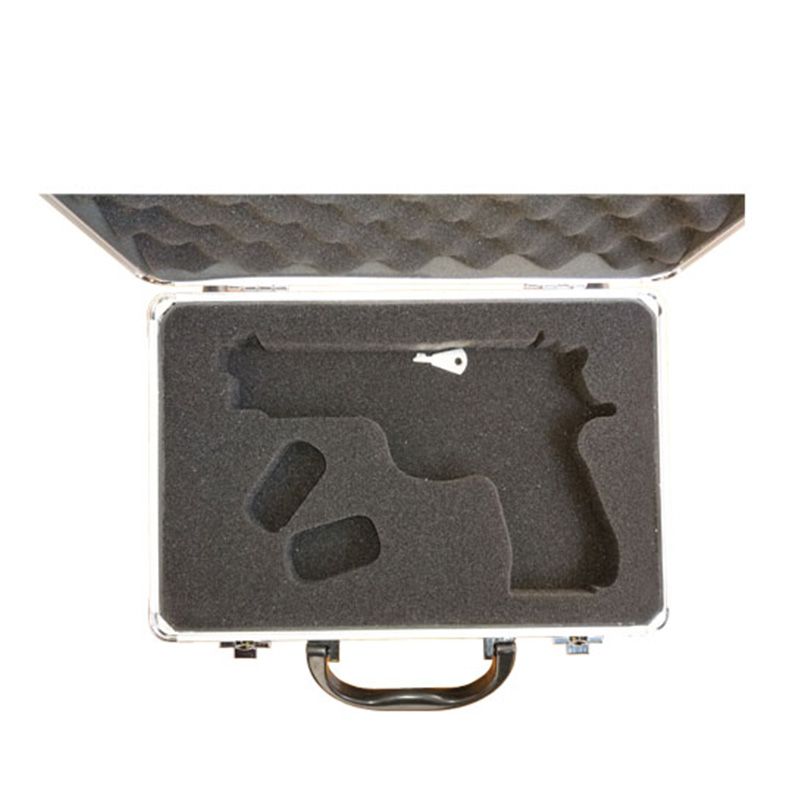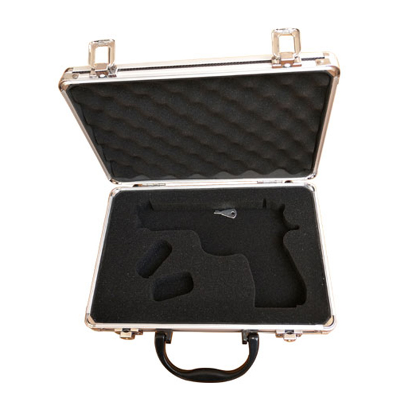 Dieser Pistolenkoffer ist speziell für Spielzeugpistolen mit Spielzeugzündung konzipiert. Um Kosten zu sparen, ist er besonders flach. Die Oberfläche besteht aus schwarzem ABS-Material. Für eine optimale Passform der Pistole ist der Koffer passgenau ausgeschnitten. Ansonsten entspricht er einem herkömmlichen Pistolenkoffer.