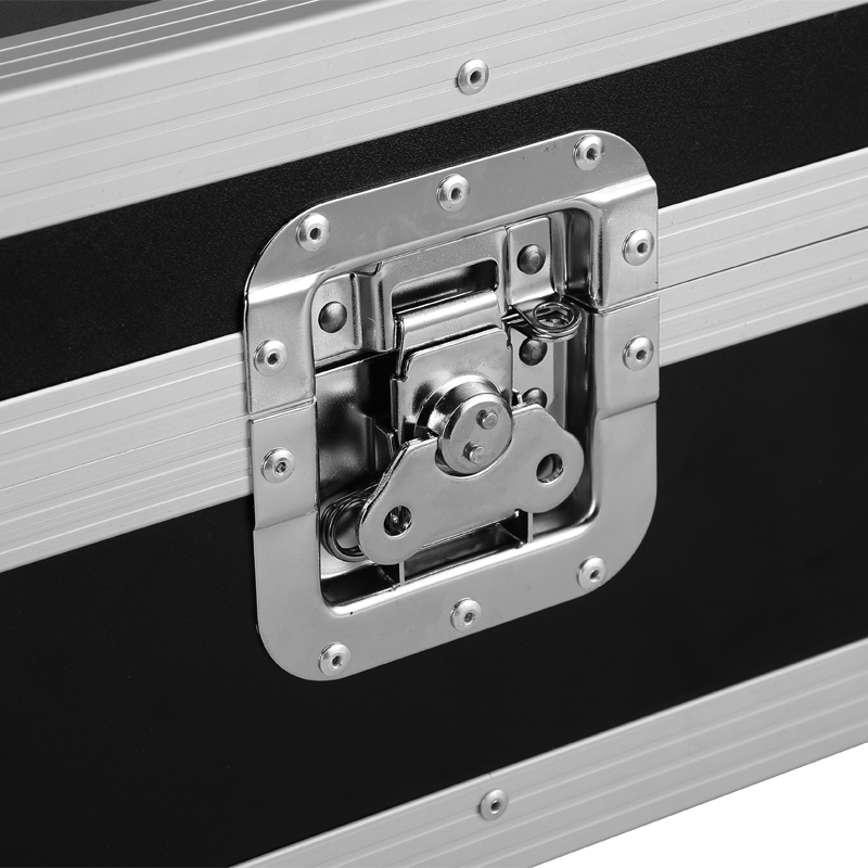Dieses maßgefertigte Flightcase wird im eigenen Haus unter Verwendung von Hardware hergestellt, die maximalen Schutz bei minimalen Außenabmessungen gewährleistet.